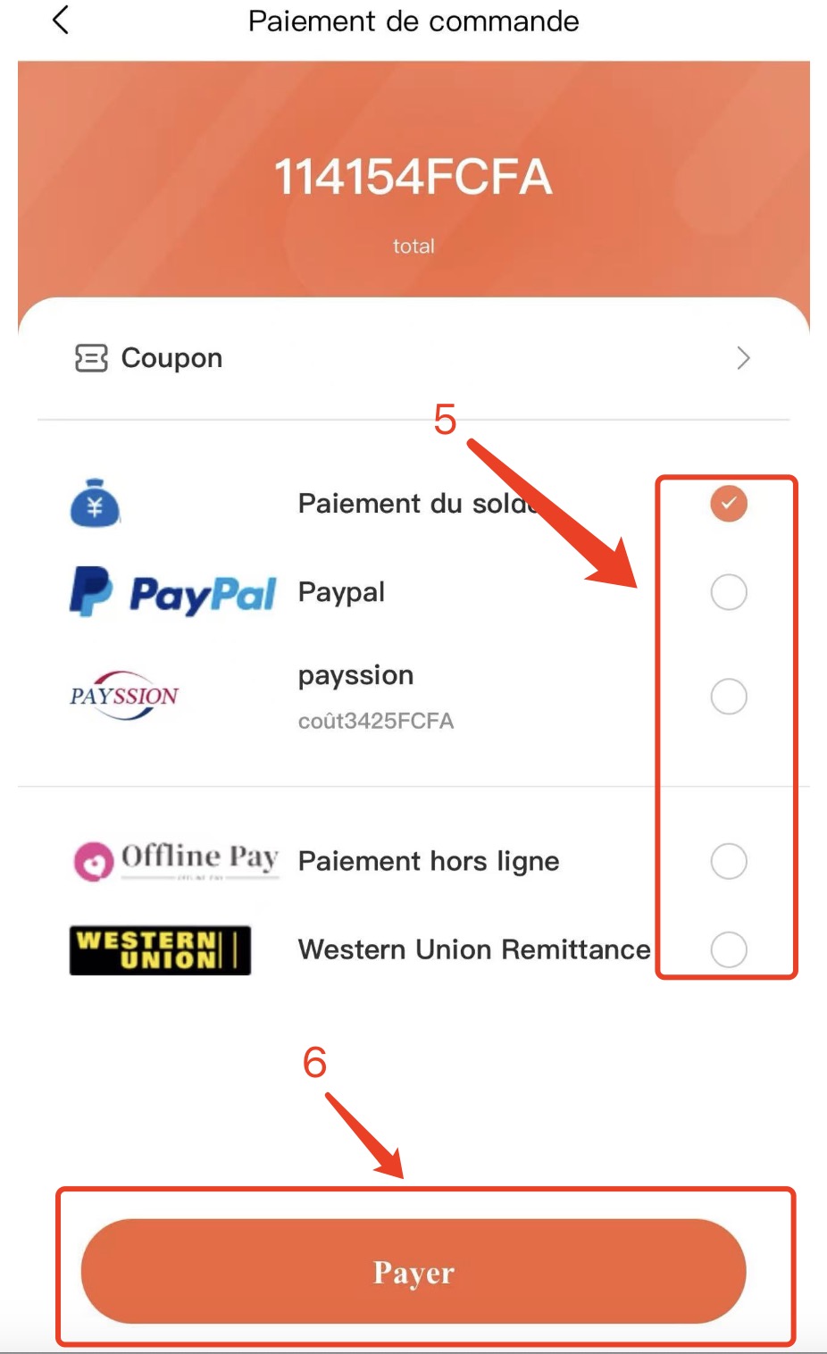 Étape 3 : Choisissez le mode de paiement qui vous convient. Nous acceptons les paiements en ligne et hors ligne.